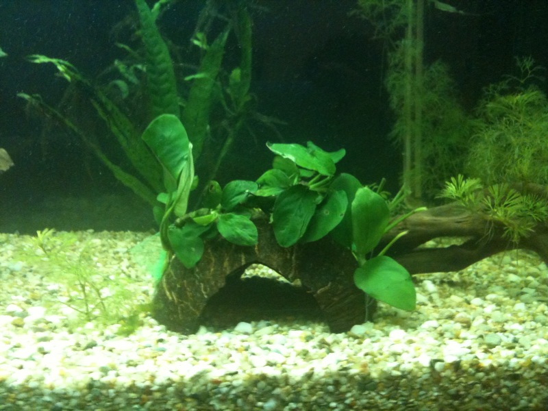 ) το εβγαλα απο το γλαστρακι και το περιεργαστικα λιγο...ηταν σαν να ειναι κλαδεματα...ειχε μικρες ριζες κατι το οποιο με απετρεψε απο το να το δεσω σε καποια καρυδα αφου η κλωστη δν θα τις επιανε ...ετσι το εβαλα κατευθειαν στο χαλικακι μεχρι να μεγαλωσει λιγο...περιττο να πω .πως ολα τα ψαρια εδω και 1 ωρα εχουν μαζευτει και το περιεργαζονται...ειναι καλο που τα εβαλα ''κολλημενα'' τα φυλλα ή πρεπει να ειναι αλλιως ... καποιος??/ |