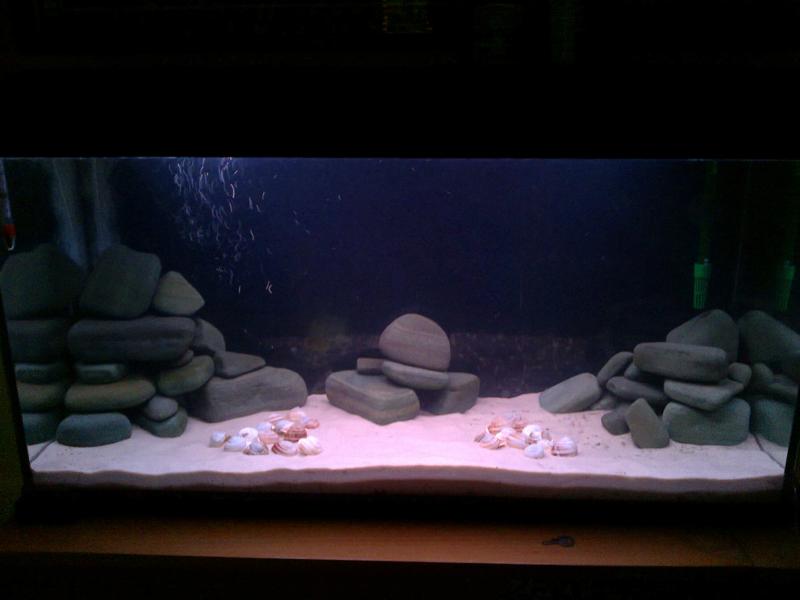 πολυ ομορφο το ενυδρειο σου και τα ψαρια σου .. ισως αν εβρισκεις και καμια πιο "ατσαλη" πετρα που να μην ειναι τοσο επιπεδη να "εσπαγε" λιγο το χειροποιητο ισως εδειχνε ακομα πιο φυσικο τελειο παντως
