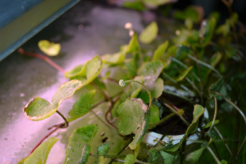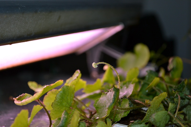 Εδώ και ενα-εναμιση μήνα είχε κανει κίνηση και βγήκε εκτος ενυδρείου. Επειδή το έχω ανοιχτό, εχω βάλει ενα τζάμι απο πάνω για να μειωνεται η εξάτμιση. Εκει βρήκε πάτημα το φυτό. Οταν πρωτοβγήκε εβαλα σε ενα μεγάλο καπάκι λίγο χώμα (χουμους). Εκει εκανε ρίζες. Απο τότε τρελάθηκε στην ανάπτυξη... Περιττό το να πώ οτι οι ρίζες εντος του νερου είναι πολύ πιο πολλές/πυκνες στο σημείο πρίν βγει εκτός νερου. Το φυτό το ψέκαζω καθε λίγο για να διατηρεί υγρασία και να μη μου ξεραθεί. Λόγο του οτι βγήκε απέξω είχα ξεκινήσει να κάνω ενα παλουνταριουμ (το οποιο κόλλησε λόγω τεχνικών δυσκολιών με τον αφρό πολυουρεθάνης. )
