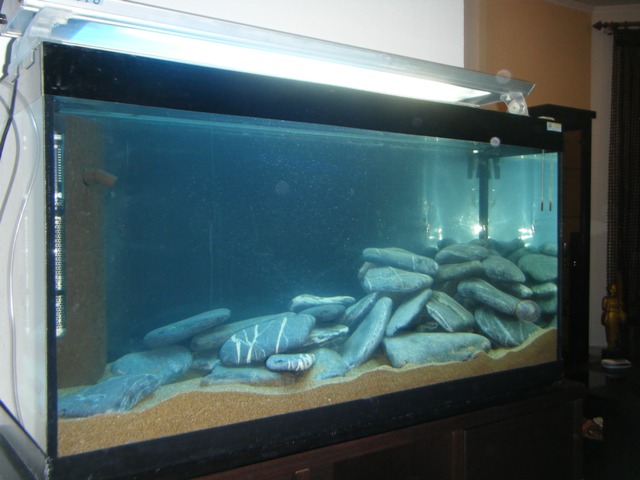 οι πετρες μου αρεσουν χρωματικα..και επειδη ειναι λιγο επιπεδες και λεπτες κερδιζεις αρκετα σε βαρος απ'οτι αν ηταν ογκωδεις. αληθεια ειναι κολλημενες η απλα στηριζονται? το θερμοστατη δε μπορεις να τον κρυψεις μεσα στο κουτι του φιλτρου? θα συνιστουσα μονο μια λαμπα να αναβεις και για οικονομια...και για να αποφευγεις πολυ υψηλες θερμοκρασιες το καλοκαιρι...και για να μη τρελαθεις στην αλγη. ο κυκλοφορητης μου κανει για πολυ μεγαλος. 1700λιτρα/ωρα εστω και αν δε τα πιανω εντελως...ειναι πολλα νομιζω για 200 λιτρα...αρκετα λιγοτερα καθαρα. δοκιμασε το...αλλα αν δεις οτι σου το κανει πλυντηριο και τα ψαρια δυσανασχετουν, αντικατεστησε τον με εναν μικροτερο. καλη συνεχεια! υ.γ. μη χρησιμοπειεις κεφαλαια γιατι στη γλωσσα του ιντερνετ ειναι σαν να ΦΩΝΑΖΕΙΣ!!