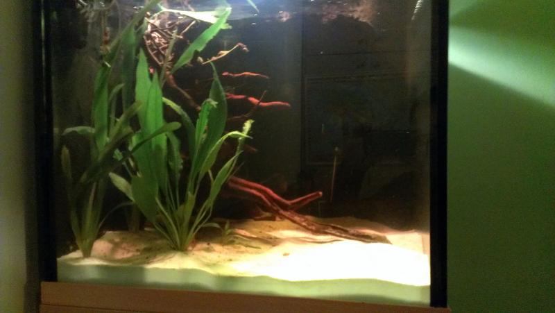 Διαστάσεις: 60*60*50 Όγκος: 220λιτρα Κατηγορία: Κοινωνικο Φυτά: Vallisneria Gigantea και Echinodorus bleheri Ψάρια / ¶λλα είδη: 3 Yellow-bellied slider Διακοσμητικά υλικά: 25κιλα λευκη αμμος carrat 6 κ δυο ριζες Φόντο: Μαυρο Φωτισμός: 100w daylight - 24w uva-uvb Διάρκεια φωτισμού: 11 ωρες Φιλτράρισμα: Fluval 405 Θερμοστάτης: 200w Παράμετροι: pH:7.5 Αλλαγές νερού: 20% καθε βδομαδα Θερμοκρασία: 26ο εντός νερού, 35ο εκτός