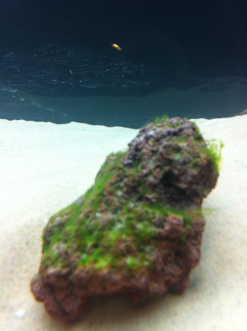 γνωριζει κανεις τι ειναι αυτο πανω στην πετρα?Το ενυδρειο τρεχει 2 εβδομαδες ειναι ακομα στο στρωσιμο και εχει μεσα μονο χαλαζιακη αμμο και πετρες λαβα..