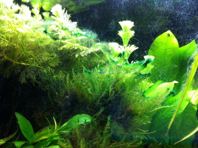 Εμενα η πρωτη μου κινηση θαταν να κοψω το λιπασμα και μετα να ανεβασω φωτισμο. Τα φυτα δεν δειχνουν να τους λειπει φως ιδιαιτερα. Ολα εκτος της σεσιφλορα ειναι μετριεας εως πολυυυυ αργης αναπτυξης και ο παραπανω φωτοσμος δεν θα ωφελιση σε κατι στην παρουσα φαση που τα φυτα ειναι "πισω". Η σεσιφλορα μαζευει μπολικο πραγμα και σε μενα ευκολα το παθαινει, εγω θαλεγα να επιχειρησεις και με προσοχη διαλυμα χλωρινης νερου 1:19, 10-20 δευτερα μεσα τα φυτα χωρις τις ριζες και μετα ξεπλυμα σε νερο ενυδρειο εν ωρα αλλαγης πχ. Και λιγο εξτρα αντιχλωριο Νασαι ασφαλης.