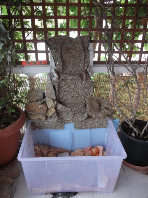 H πλάτη του καταρράκτη έχει ντυθεί με ειδική αδιάβροχη μεβράνη με χαλίκι κολλημένο πάνω. την πήρα έτοιμη. μόλις τελειώσω θα γράψω και το κόστος που δεν είναι μεγάλο...όσο για το alfa blook το βρήκα σε mantra υλικών . πουλιέται και με το κομμάτι νομίζω 3,5 ευρώ .