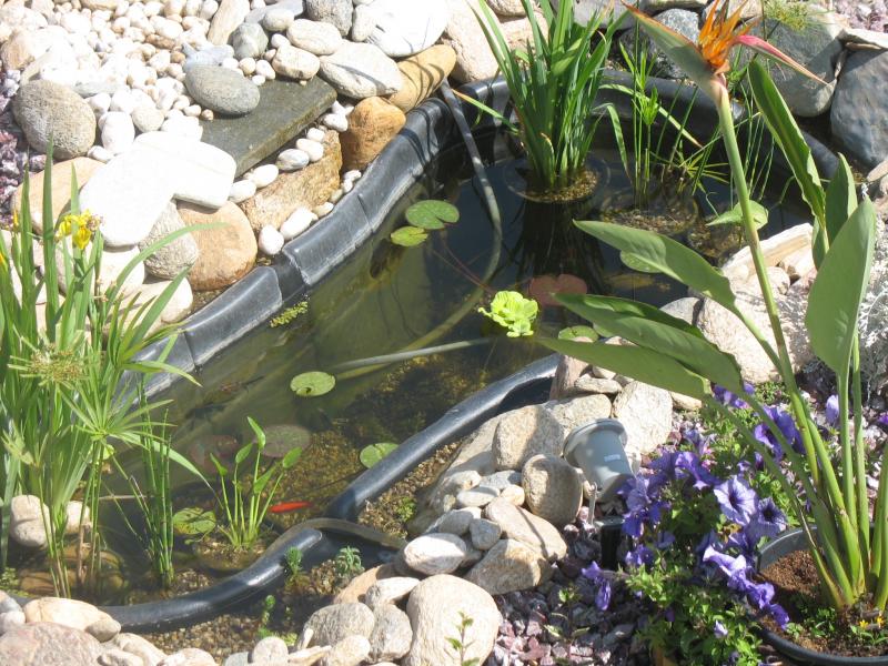 η λιμνουλα μου εχει κλεισει ηδη μια εβδομαδα, ειναι 590 λιτρων και εχω βαλει μια αντλια των 1200 λιτρων/ωρα, φιλτρο λογω μεγεθους δεν εχω βαλει αλλα με την μια εξοδο απο την αντλια στελνω νερο στα "αβαθη" περιμετρικα της λιμνης που τα εχω γεμισει με ψιλο χαλικη, ενω με την αλλη εξοδο στελνω νερο στο μικρο ρυακι και καταρακτη που εχω φτιαξει για ομορφια και οξυγονωση του νερου. Δεν κρατηθηκα και εχω ηδη βαλει 8 χρυσοψαρα, ενω τα φυτα ηταν μια ευγενικη χορηγια του japetus-νικου, απο την λιμνη του οποιου μου μπηκε και η ιδεα.