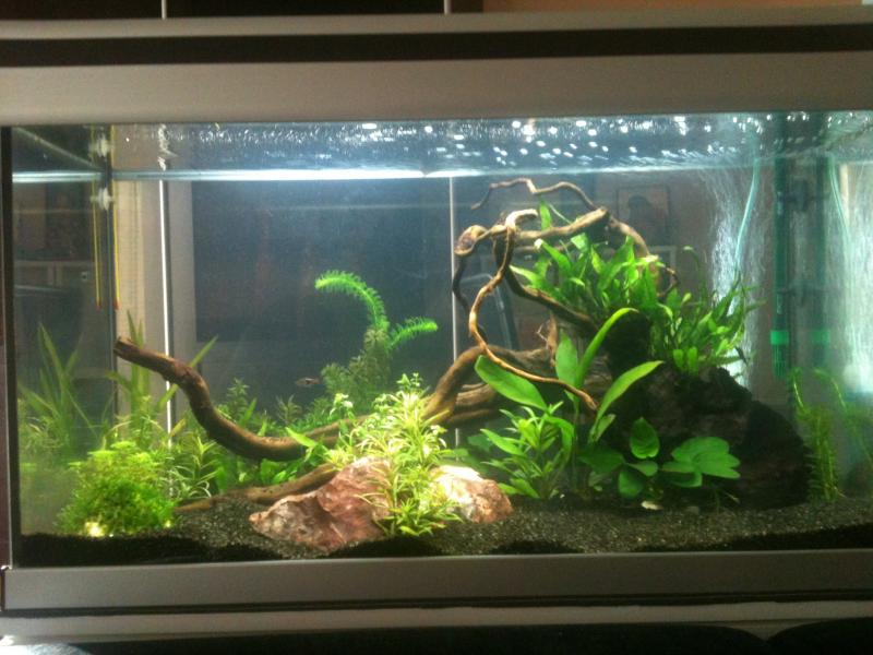 Στο βυθό έχω 2 πέτρες και φυτά. Να μια φωτογραφία αν και το βράδυ η έλλειψη διάυγειας είναι πιο ευδιάκριτη.