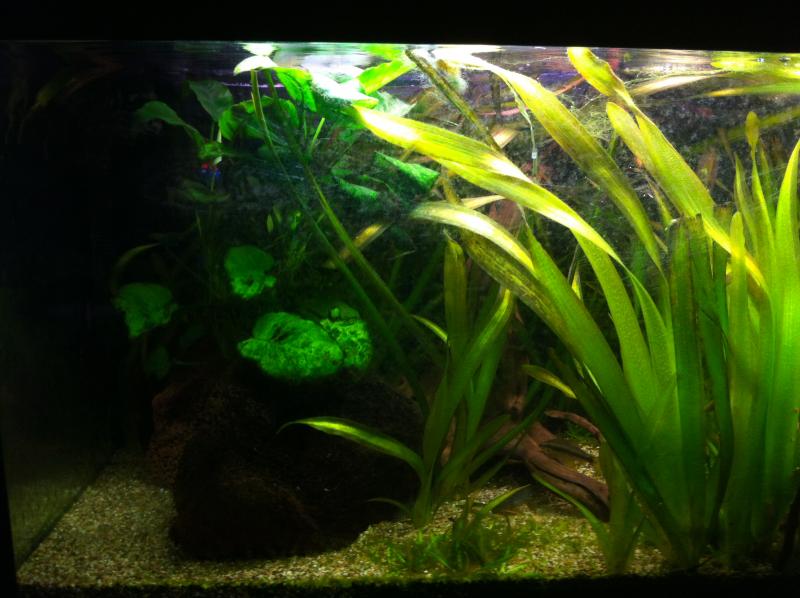 Προηγουμένως φιλοξενούσε 4 σκαλαράκια , αλλά τα 3 πεθάναν , καθώς κάποιος (καθαρίστρια, φιλος?) κούνησε την ταίστρα και έριξε όλη την τροφή μέσα. Δεν το πήρα χαμπάρι εγκαίρως.ισως να εκανε μια αποτομη αυξηση αμμωνιας και να τα εστειλε,αλλα αμφιβαλω οτι ηταν μονο αυτο προβλημα.κυριως λογω της ψαροσυνθεσης σου και των παραμετρων του νερου σου.