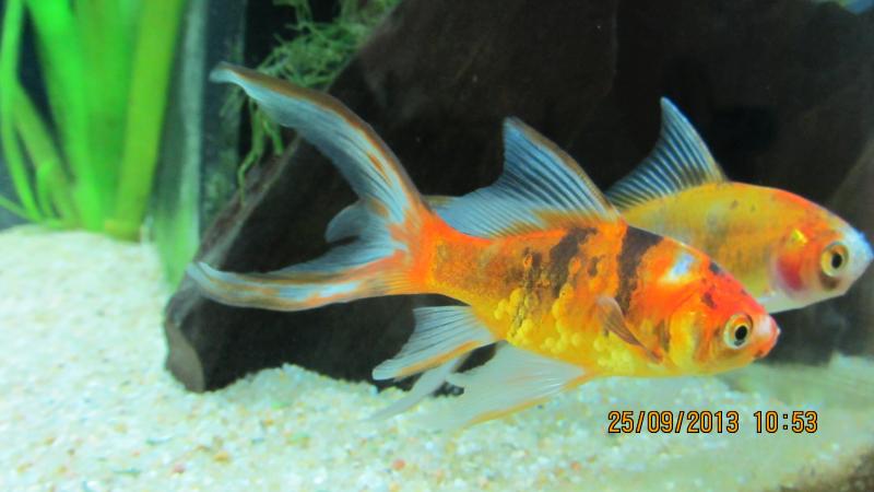 Για δειτε προσεκτικα το ψαρακι πως ηταν πριν 8 μηνες, και πως ειναι τωρα, κοιταχτε το ραχιαιο πτερυγιο και το μπροστινο το δεξια... Εγω παρατηρω μια αλλαγη στη χρωμα, σαν σκουρο καφε μου φαινεται. Ειναι κατι...φυσιολογικο ή αραγε συμβαινει κατι αλλο; (οι 3 πρωτες φωτο ειναι οι παλιες και οι αλλες 3 ειναι σημερα τραβηγμενες)