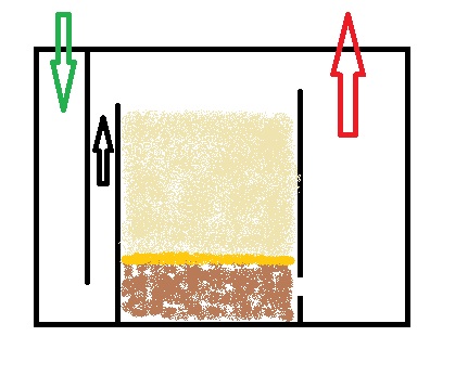 Κόκκινο βέλος = έξοδος νερού από το sump είτε στο ενυδρείο με αντλία είτε να πηγαίνει πρώτα σε εξωτερικό φίλτρο που έχω με βιολογικό υλικό.