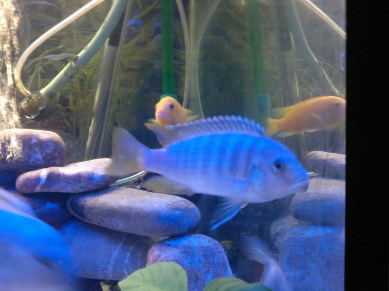 τo 3o Metriaclima greshakei τα άλλα δύο Metriaclima zebra (blue)? ή υβρίδια. Όλα υβριδίζουν μεταξύ τους. |