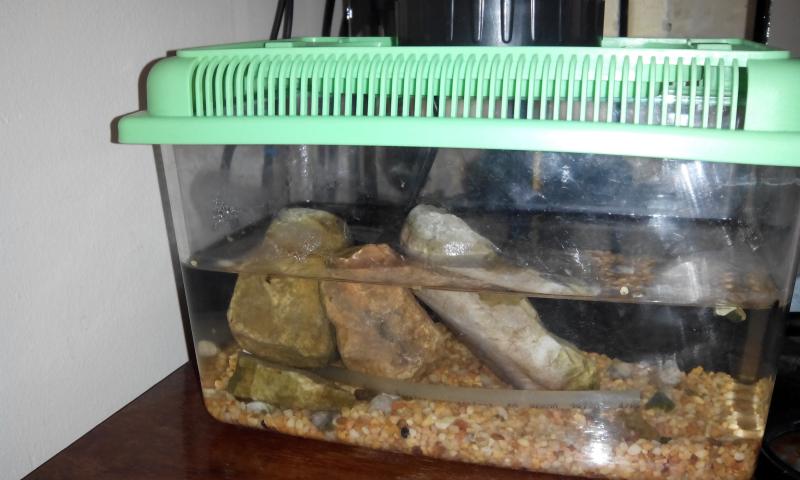 αυτο με την λαμπα μπορει να ειναι σωστο.... δυστυχως να το αφησω εκει που το βρηκα ειναι καπως δυσκολο προς το παρον.... αν αντεξει και δεν γινει τεραστιο μεχρι τον αυγουστο που θα ξαναπαω εχει καλως, αλλιως θα το αφησω σε καποιο κοντινο ποταμακι αν και ουτε αυτο ειναι το πιο σωστο..... οσο ειναι μικρο παντως θα το φιλοξενησω.... οι πετρες ειναι απο το φυσικο του περιβαλλον παντως