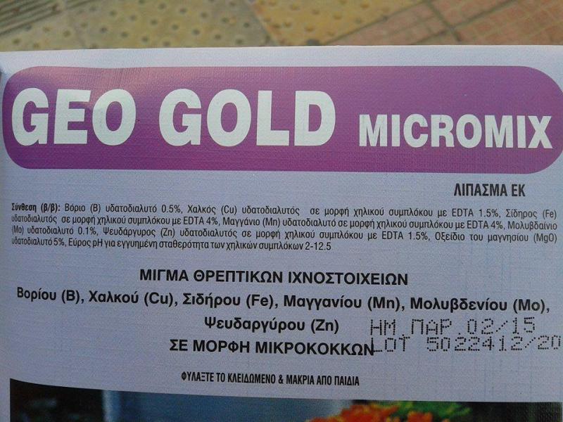 Geo gold (ιχνοστοιχεία) 50γρ σε 1 λίτρο νερο = ανα 5ml