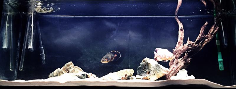 3ή μερα με τα Oscar σημερα..ξαναέκανα αλλαγή περιπου 50-60% κ έβαλα και 3-4 πέτρες ακόμα στην δεξιά πλευρά που ηταν κενή..επίσης παρατήρησα Οτι η προχτεσινή τροφή που είχα ρίξει κ ειχε κάτσει στο βυθό δεν υπήρχε..οποτε μάλλον έφαγαν..τους ξανα έριξα και λιγο τροφή..ακόμα κρύβονται μολις βλέπουν κάποιον στο δωμάτιο..όταν ειναι μόνα τους βγαίνουν κ κολυμπάνε επιφυλακτικά..τοσο πολύ φόβο αυτά τα ψάρια;;τις Αφρικανές τις έριχνα κ έκαναν 50 φορές το ενυδρείο πέρα δώθε κατευθείαν ������