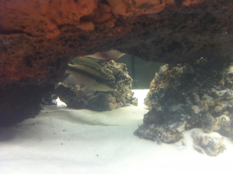 Αυτές τις ημέρες έφτιαχνα το 1ο μου ενυδρείο. Για να μην μακρυγορώ στο στρώσιμο χρησιμοποίησα ζωντανά βακτήρια εμπορίου και μετά από μετρήσεις με υγρά τεστ από σήμερα φιλοξενώ χαρούμενος 2 kribensis (ζευγάρι). Το ενυδρείο είναι 90 λίτρα μικτά με διαστάσεις 80 χ 30 χ 45 και χρησιμοποιώ ένα εσωτερικό φίλτρο με pump 600l/h, 2 βιολογικά υλικά , σφουγγάρι και βαμβάκι. Αφού τους έκανα 1 ώρα προσαρμογή και αφού κρύφτηκαν για τα καλά για κανένα τρίωρο πλέον βολτάρουν αριστερά δεξιά χωρίς κανένα πρόβλημα. Με προβλημάτισε όμως κάτι και θέλω την συμβουλή σας. Μέσα στο ενυδρείο έχω 2 μεγάλες πέτρες λάβας και μερικές κεραμικές μικρές. Ανησυχώ μήπως τα ψαράκια γρατζουνίζονται και θα σας πω γιατί. Παρατηρώ ότι όταν συνοστίζονται μεταξύ τους για να περάσουν από κάπου (παρεμπιπτόντως πάνε συνέχεια μαζί) ότι όπως κολάνε λίγο τρέμουν στην προσπάθεια να απεγκλωβιστούν. Λέτε να συμβαίνει αυτό που λέω; Eίναι λίγο υπερβολικό αλλά θέλω να μάθω για να κάνω τις απαραίτητες κινήσεις. Επίσης, σκέφτομαι να τους πάρω αυτές τις hobby σπηλιές με την τρύπα τις στρογγυλές που δεν ψευτίζουν τόσο. Είμαι γενικά κατά του ψεύτικου αλλά σε μία επιδρομή στο youtube είδα ότι γενικά τις προτιμούν και ότι τα ψάρια την καταβρίσκουν. Τέλος, υπενθυμίζω ότι τα ψαράκια μπήκαν σήμερα. Μπορώ πχ αύριο να κάνω αλλαγές μέσα στο ενυδρείο με προσοχή και σιγά σιγά; Θέλω να πω , αν υπάρχει πρόβλημα με τις πέτρες αυτές , θα πρέπει να παρέμβω να μεγαλώσω το άνοιγμα κλπ. Όπως και αν είναι να βάλω την σπηλιά πάλι πρέπει να παρέμβω. ΥΓ. Επισυνάπτω φωτό. Το νερό είναι πολύ θολό ακόμα λόγω βακτηρίων και η κάμερα κακή. Σας ευχαριστώ εκ των προτέρων |