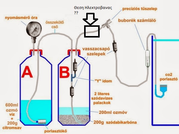 Αυτη ειναι η σωστη διαταξη που εχω επισυναψει ? Απο μειγμα πιο ειναι το ιδανικο διοτι εγω μεχρι τωρα βαζω : Μπουκαλι 1 : 600 ml νερο + 200γρ κιτρικο Μπουκαλι 2 : 200 ml νερο + 200γρ σοδα Σωληνακια υψηλης πιεσης που μπορουμε να προμηθευτουμε ? |