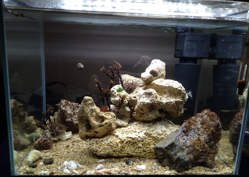 Τα πράσινα αυτά φυλλαράκια, αν βάλεις ένα 10βατο λεντ για φως, τώρα που έχει πέσει η θερμοκρασία, θα σου γεμίσουν τους βράχους... Κι εγω με jumboενυδρειάκι είχα ξεκινήσει... Στο φιλτράκι βγάλε την ελαφρόπετρα, δεν χρειάζεται, έχεις τόσο βράχο μέσα.. Αν γουστάρεις, σύντομα θα πας σε μεγαλύτερο, οπότε δεν κάνω άλλες παρατηρήσεις.. |