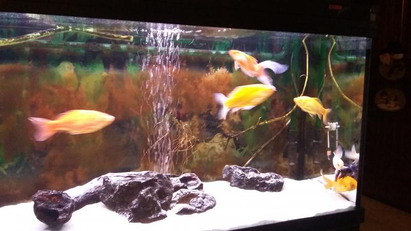 Λουκα το black moor σκαβει αβερτα απλα δεν εκατσε στο βιντεο. Οσον αφορα την αεραντλια απλα μου αρεσουν οι μπουρμπουλιθρες. Οσον αφορα το φωτισμο η αληθεια ειναι οτι δεν εχω ιδεα εαν ειναι υπερβολικος. Τελος οσον αφορατις ανασες εγω δεν ειχα προσεξει κατι. Ω αληθεια ειναι οτι το κιτρινο ειναι θηλυκο και τρωει χοντρο κυνηγιτο απο τα αρσενικα του ενυδρειου. Παντως και για δυο θεματα καλα που τα ανεφερες να δουμε τι θα μας πουν και οι υπολοιποι