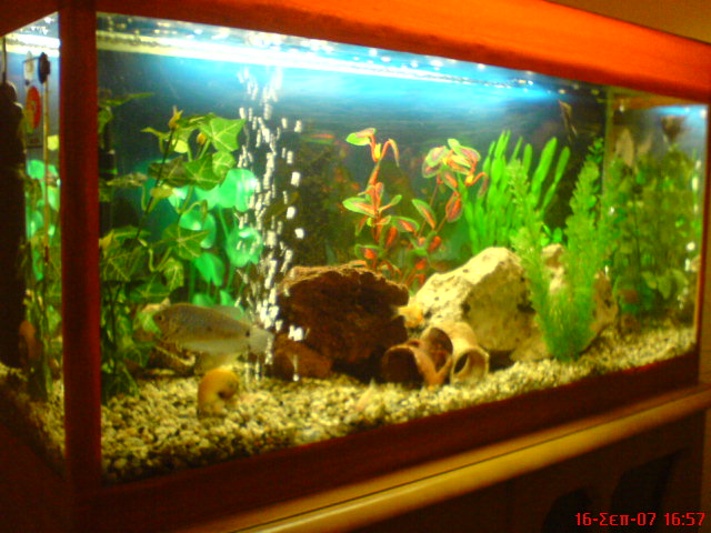 περιμένω το δεύτερο ενυδρείο μου 250 λίτρα ψαρια : 2 skalaria 3 gourami (2f+1m) 1 pleko 2 gatopsara 2 tigrakia 3 saligaria 6 garides |
