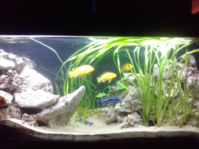 Όγκος: 200lt Κατηγορία: malawi Φυτά: Vallisneria Anubia Ψάρια: Labidochromis Caeruleus 2m+3f,Cyanerhabos Maingano 1m(μεχρι στιγμης)1 pleco Διακοσμητικά υλικά: αμμος θαλασσης,φεγκαροπετρα Φωτισμός: 1 λευκη + 1 blue marine Διάρκεια φωτισμού:8-10ωρες Φιλτράρισμα: eheim 2217 Θερμοστάτης 300 w Ψηξη: - Παράμετροι: pH:8.2(περιπου) Γενική σκληρότητα (GH):20 Ανθρακική σκληρότητα (ΚΗ):15 Αμμωνία (ΝΗ4):0 Νιτρώδη (ΝΟ2):0 Νιτρικά (ΝΟ3):0 Αλλαγές νερού:30 % / 20 μέρες Θερμοκρασία: 26 και μερικες φοτο!!ειναι τραβιγμενες απο κινητο και ειναι πολυ χαλια αλλα δεν πειραζει να ακουσω γνωμες θελω!!
