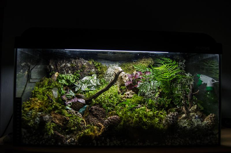 Ενα παλιο ενυδρειο, μερικα φυτα και ξυλα απο τη φυση, 3 φιττόνιες για χρωμα και μετα απο πολυ καιρο αδρανειας επανερχομαι με ενα τεραριουμ.