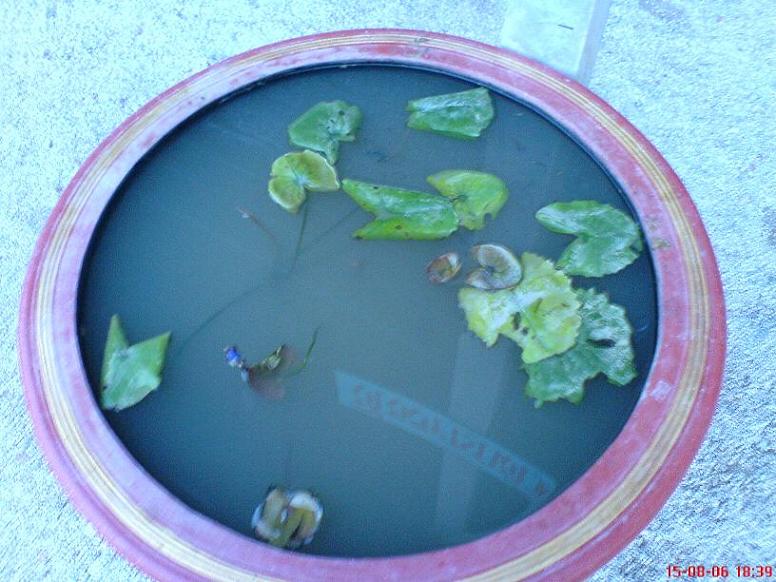 Λοιπόν εκεί είδα κάποιες γούρνες διαμέτρου και βάθους περίπου 60cm σπαρμένες στο χώρο, με βραστό κυριολεκτικά στάσιμο βουρκό-νερo κάτω από έναν ανελέητο ήλιο και με κάποιου είδους υδρόβιο φυτό. Πλησιάζοντας βλέπω να είναι γεμάτα με πάρα πολλά πολύχρωμα gapοειδή ψαράκια.
