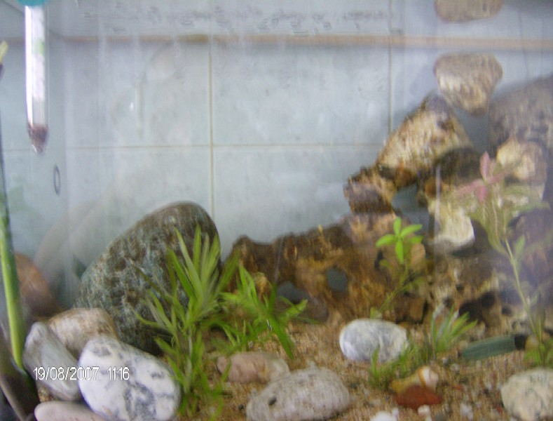 Διαστάσεις:75Χ45Χ40 Όγκος:135λιτρα Κατηγορία:Μαλαουι Φυτά:2Hygrophila polysperma 1 Hygrophila polysperma 'Rosanervig', 3-4Heteranthera zosteraefolia Ψάρια / ¶λλα είδη:2m+3f +5μωρα!Labidochromis caeruleus (Electric yellow labido) 1 Synodontis multipunctatus Διακοσμητικά υλικά:Πετρες απο βουνο,moonstone (χαλίκι, ξύλα κ.λ.π.)αμμος Φόντο:πλακακι μπανιου!(ξερω θα βαλω μαυρο χαρτονι!!!) Φωτισμός:συντομα μια 15cm sera plant Διάρκεια φωτισμού:θα...8ωρες Φιλτράρισμα:Eheim 2213 +aquaclear 50 powerhead Θερμοστάτης:100watt juwel(οταν χειμωνιασει) Λίπανση:............ Παροχή CO2:....... Παράμετροι: pH:~8 Γενική σκληρότητα (GH):20 Ανθρακική σκληρότητα (ΚΗ):12 Αμμωνία (ΝΗ3):0 Νιτρώδη (ΝΟ2):0 Νιτρικά (ΝΟ3):~15 Αλλαγές νερού:50% καθε 10μερες Θερμοκρασία:25 ¶λλες πληροφορίες:Δεν βλεπω σχεδον ποτε τα ψαρια μου παραμονο τα μωρα που κανουν!Βοηθηστε με!Επισης θελω να καλυψω το κυκλοφορητη με Crinum natans.Τωρα οσο αναφορα τα φυτα,απλα αρεσουν και σε μενα και στα ψαρια.Απεχει οσο να ναι απο το βιοτοπο αλλα κρατανε και τη βιολογια εκει που θελω.Στη 3η φωτο ξεπροβαλει απο το βραχο και ενα μωρο!!!