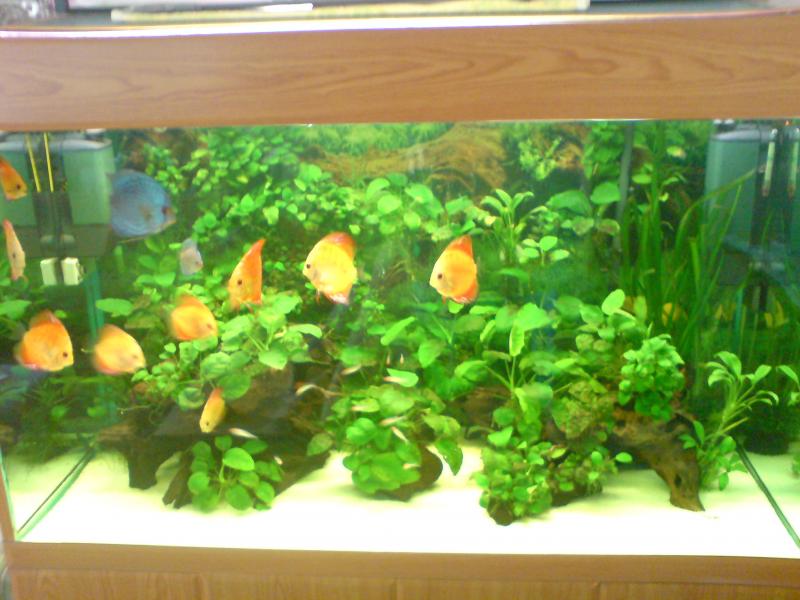 Διαστάσεις:130 Χ 60 Χ 80 Όγκος: 624 lit. Κατηγορία: Freshwater με Δίσκους και Φυτά. Φυτά: Ανούμπιες και βαλλισνέριες. Ψάρια / ¶λλα είδη: Δίσκοι, cory, Ροδόστομοι. Διακοσμητικά υλικά: Λευκή χαλαζιακή (ψιλή) άμμος,πέτρες λάβας και κορμοί. Φόντο: Ανούμπιες τοποθετημένες στο τζάμι της πλάτης,σε φόντο αφίσας ποταμού. Φωτισμός: 2x36w t8 grolux,1x36w t8 aquastar,3x39w t5 arcadia. Διάρκεια φωτισμού: 17 ώρες σπαστά. Φιλτράρισμα: 2 x Eheim 2012 εσωτερικά,Eheim 2227 με φλωτέρ,Eheim 2213 βιολογικό, Fluval 403 βιολογικο. Θερμοστάτης: 1x Tetra 300w, 1x Jager 250w. Λίπανση: Σήδηρος και κάλιο. Παροχή CO2: Οχι. Αεραντλία: Tetra PH control: Hanna Παράμετροι: pH: 7.0 Γενική σκληρότητα (GH): 10 Ανθρακική σκληρότητα (ΚΗ): 7 Αμμωνία (ΝΗ3): 0 Νιτρώδη (ΝΟ2): 0 Νιτρικά (ΝΟ3): 0 Αλλαγές νερού: 80 lit. A/O + 40 lit. νερό βρύσης με aquasafe. Θερμοκρασία: 28.5 Φωτογραφία: Παρακάτω. |