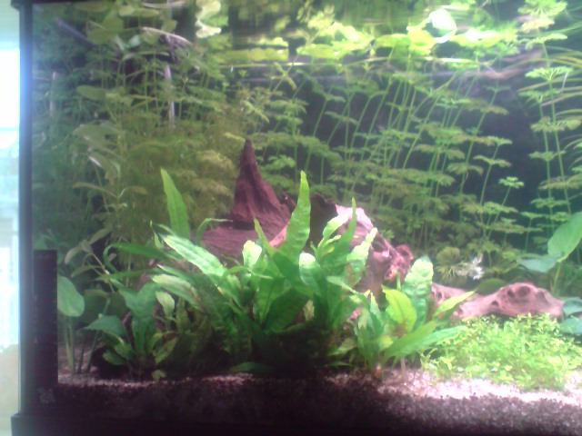 ΕΞ. ΔΙΑΣΤΑΣΕΙΣ: 100χ33χ35 ΚΑΘΑΡΑ ΛΙΤΡΑ: 100 ΧΡΟΝΟΣ ΛΕΙΤΟΥΡΓΙΑΣ: 5 μηνες ΣΤΡΩΣΙΜΟ: με στρωμενο εξωτερικο φιλτρο απο παλιο ενυδρειο για περιπου 1 εβδομαδα πριν μπουν ψαρια ΒΥΘΟΣ/ΥΠΟΣΤΡΩΜΑ: ψιλο χαλικι 1-2mm μπεζ χρωματος,γυρω στα 10 κιλα και έχει ύψος 4-5 εκ. ΔΙΑΚΟΣΜΗΣΗ:2 ρίζες (1 μεγαλη και 1 μικρή) ΨΑΡΙΑ & ΟΡΓΑΝΙΣΜΟΙ: πρεπει να ειναι καμια 20αρια endler (μπορει και παραπανω λογω γεννησεων) και 1 pleco. ΤΑΪΣΜΑ/ΤΡΟΦΕΣ: 2 φορες την ημερα με φυλλαρακια σε τακτα σχετικα διαστηματα ΦΥΤΑ: πολυ anubia,java fern, Echinodorus Tennellus,Hygrophilia Polysperma,Ambulia Aquatica,BacopaMonniera ΛΙΠΑΣΜΑΤΑ: τις ταμπλετες του υποστρωματος (θα δουμε αν ειναι καλες,τις πηρα απο το aquaristic.net) και σκεφτομαι να βαζω flourish της seachem αν ειναι καλο ΦΩΤΙΣΜΟΣ & ΦΩΤΟΠΕΡΙΟΔΟΣ: 2 λαμπες T8 με 24W η καθεμία.Η φωτοπερίοδος ειναι 10 ωρες. 10-8. ΜΕΤΡΗΣΗ ρΗ: 7,5 με sera και tetra ΜΕΤΡΗΣΗ GH: 10 με υγρα τεστ aquili ΜΕΤΡΗΣΗ ΚΗ: 7 με υγρα τεστ aquili ΜΕΤΡΗΣΗ ΝΟ3: 0 με υγρα τεστ aquili ΜΕΤΡΗΣΗ TDS:..... ΑΛΛΕΣ ΜΕΤΡΗΣΕΙΣ:NH3/NH4=0 με υγρα τεστ aquili ΘΕΡΜΟΚΡΑΣΙΑ: 26-27 ΦΙΛΤΡΟ & ΥΛΙΚΑ: εξωτερικο dophin c-500 με βιολογικο μακαρονι ΑΛΛΟΣ ΕΞΟΠΛΙΣΜΟΣ: θερμοστατης και μπουκαλα 2κιλη CO2 με ηλεκτροβανα και 2 μανομετρα. ph controller θα παρω συντομα (1 φυσαλιδα στο 1-1,5 δευτερολεπτο) ΑΛΛΑΓΕΣ ΝΕΡΟΥ: 1 φορα την εβδομαδα σε 25%-30% ΑΛΛΕΣ ΡΟΥΤΙΝΕΣ: ΓΕΝΙΚΕΣ ΠΑΡΑΤΗΡΗΣΕΙΣ & ΣΧΟΛΙΑ:επανειλλημενες γεννησεις των endlers,ολα φαινονται τελεια! |