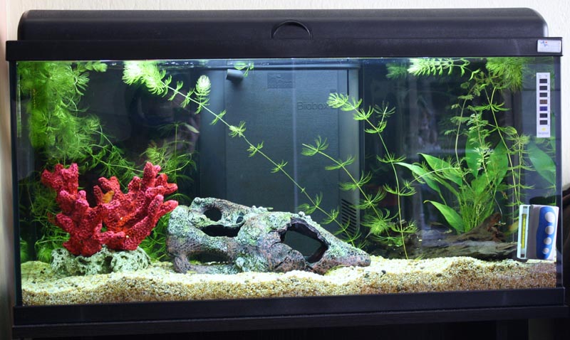 Διαστάσεις:80x30x45 Όγκος: περίπου 100 λίτρα Κατηγορία:Λίγα φυτά που σύντομα θα γίνουν περισσότερα! Φυτά:κερατόφυλλο,anubia. Ψάρια / ¶λλα είδη:8 endlers και 3 platy 1 γαρίδα amano και αρκετα σαλιγκαράκια! Διακοσμητικά υλικά:15 Kg χαλίκι , 1 ξύλο , 2 διακοσμητικά. Φωτισμός:1x18 Watt T8 Διάρκεια φωτισμού:10 ώρες Φιλτράρισμα:Biobox 2 (σφουγγάρι,υαλοβάμβακας,mini siporax) Θερμοστάτης:100Watt Λίπανση-Παροχή CO2:Hobby Sanoplant Παράμετροι: pH:7.0-7.2 Γενική σκληρότητα (GH):16 d Ανθρακική σκληρότητα (ΚΗ):6 d Αμμωνία (ΝΗ3): 0mg/l Νιτρώδη (ΝΟ2): 0mg/l Νιτρικά (ΝΟ3): 10mg/l Αλλαγές νερού: 20% κάθε 10 ημέρες Θερμοκρασία:26-27 βαθμοί Κελσίου ¶λλες πληροφορίες:Σύντομα θα αφαιρέσω τα διακοσμητικά και θα τοποθετήσω ξύλα και φυτά,γι'αυτό ζητάω απόψεις-γνώμες-παρατηρήσεις!!! |