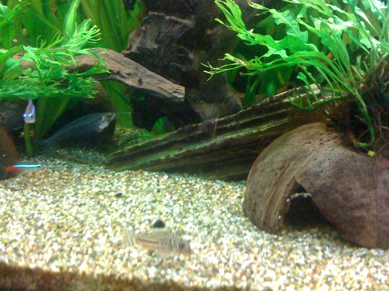 Διαστάσεις:101 x 50 x 41 εκ. (rio 180) Όγκος:180 litr Κατηγορία:κοινωνικο Φυτά:Vallisneria americana (gigantea),Cryptocoryne,Windelov Ψάρια / ¶λλα είδη:11 rasbora galaxy,4 corydoras julli,1 comon pleko,5 zebra nitrine snails,7 νεον τετρα,4 διαφανειες,20 red cherry. Διακοσμητικά υλικά:ξυλα,καρυδες,χαλικι aquatica (1mm) (χαλίκι, ξύλα κ.λ.π.) Φόντο:μαυρο χαρτονι Φωτισμός:2*45 watt Διάρκεια φωτισμού: 7:30 ωρες Φιλτράρισμα:εσωτερικο juwel(1 litr biomech),εξωτερικο eheim prof 3 2073 Θερμοστάτης:200 w juwel Λίπανση:1 φορα τις 2 εβδομαδες floyrish Παροχή CO2:- Παράμετροι: pH:7,2 Γενική σκληρότητα (GH):11 Ανθρακική σκληρότητα (ΚΗ):9 Αμμωνία (ΝΗ3):0 Νιτρώδη (ΝΟ2):0 Νιτρικά (ΝΟ3):<5 Αλλαγές νερού:30% καθε εβδομαδα Θερμοκρασία:25,5 ¶λλες πληροφορίες:τρεχει 1,5 χρονο. ολα τα τεστ γινονται με τα υγρα τεστ τις api. ταισμα 1 φορα την ημερα με 3 διαφορετικες τροφες. Φωτογραφία:οι φωτογραφιες ειναι απο κινητο |