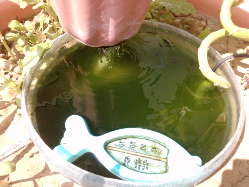 ( η αρχικη ιδεα ηταν για 80 λιτρα καθαρα αλλα λογω αστοχειας υλικου ή αστοχεια κατασκευης ειχα διαροη και τελικα κατεληξα στην παρακατω κατασκευη που μου ηρθε σε μια μικρη κριση εφυειας την στιγμη που ειπα να παρατησω το project ) το δοχειο μεσα στην γλαστρα ειναι μποτιλια απο μηχανη νερου χωριτηκοτητας 20 λιτρων Όγκος:18 λιτρα καθαρα Κατηγορία: γλαστροενυδρειο ( μια κατηγορια απο μονο του !!!) Φυτά: κερατοφυλλο, υδροφυλια πολυσπερμα, δρακαινα Ψάρια / ¶λλα είδη:ενα χαρεμακι εντλερς και αρκετα μικρα, ακομη πανω απο 150 σαλιγγαρια μικρου μεγεθους λαθρεπιβατες στα ενυδρεια μου Διακοσμητικά υλικά:- (χαλίκι, ξύλα κ.λ.π.) - Φωτισμός: το φως της μερας Διάρκεια φωτισμού: αναλογα την εποχη! Φιλτράρισμα: 500 λιτρα την ωρα κινεζικο φιλτρακι με σφουγγαρι το οποιο στελνει το νερο σε δυο diy bakki shower με αρκετο κεραμικο μακαρονακι Λίπανση: - Παροχή CO2: - Παράμετροι: pH: 7,5 Γενική σκληρότητα (GH): 12 Ανθρακική σκληρότητα (ΚΗ): 8 Αμμωνία (ΝΗ3): 0 Νιτρώδη (ΝΟ2): 0 Νιτρικά (ΝΟ3): 15 ΜΕ 20 Αλλαγές νερού: καθε βδομαδα 30 τις εκατο Θερμοκρασία: απο 20 εως 29 αυτην την εποχη ¶λλες πληροφορίες: - παλαιοτερη παρουσιαση : http://www.aquatek.gr/vb/showthread.php?t=53254