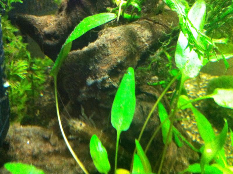 πηρα επισης και δυο γαριδες (σορρυ για την ποιοτητα της φωτο) ειναι 4-5 εκατοστα χοντρουτσικες και ειναι καφε με ασπρες γραμμες οριζοντια του σωματος τους και εχουν κατι σαν δαγκανες στα ποδια τους..στο πετ σοπ τις πουλουσαν σαν rock shrimps αν και μοιαζουν πολυ με bamboo δεν πρεπει να ειναι..