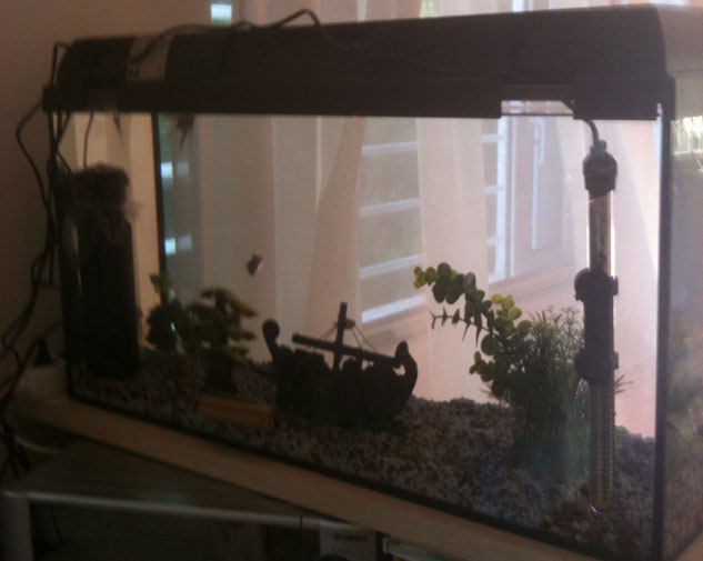 Μικρό ενυδρείο (30 λίτρα), ακατάλληλη ψαροσύνθεση για το συγκεκριμένο.