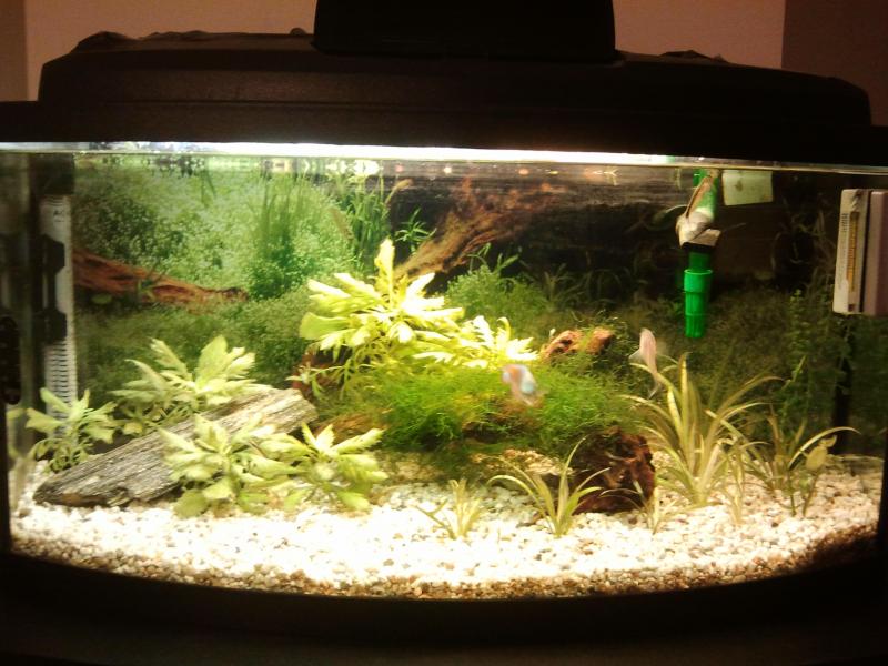 Διαστάσεις:60*30*30 Όγκος:54 Λίτρα Κατηγορία: Φυτεμένο Κοινωνικο Φυτά:Bacopa Caroliniana, Echinodorus Quadricostatus, Hygrophila Difformis, Java Moss Ψάρια / ¶λλα είδη:1 Gourami, 2 Corydora, 2 Anentome Helena Διακοσμητικά υλικά:1 Ξύλο, 1 Πέτρα, Χαλίκι (δεν θυμαμαι μάρκα :P) Φόντο:Αφίσα διπλής όψης Φωτισμός:2ΧΤ5 8-Watt Διάρκεια φωτισμού:8 ώρες (19.00-03.00) Φιλτράρισμα:ΕHEIM Ecco 2034 Θερμοστάτης:75 Watt Λίπανση:- Παροχή CO2:- Παράμετροι: pH:7,1 Γενική σκληρότητα (GH):10 Ανθρακική σκληρότητα (ΚΗ):- Αμμωνία (ΝΗ3):0 Νιτρώδη (ΝΟ2):0 Νιτρικά (ΝΟ3):5 Αλλαγές νερού:30% Κάθε 2 βδομάδες Θερμοκρασία:27 |