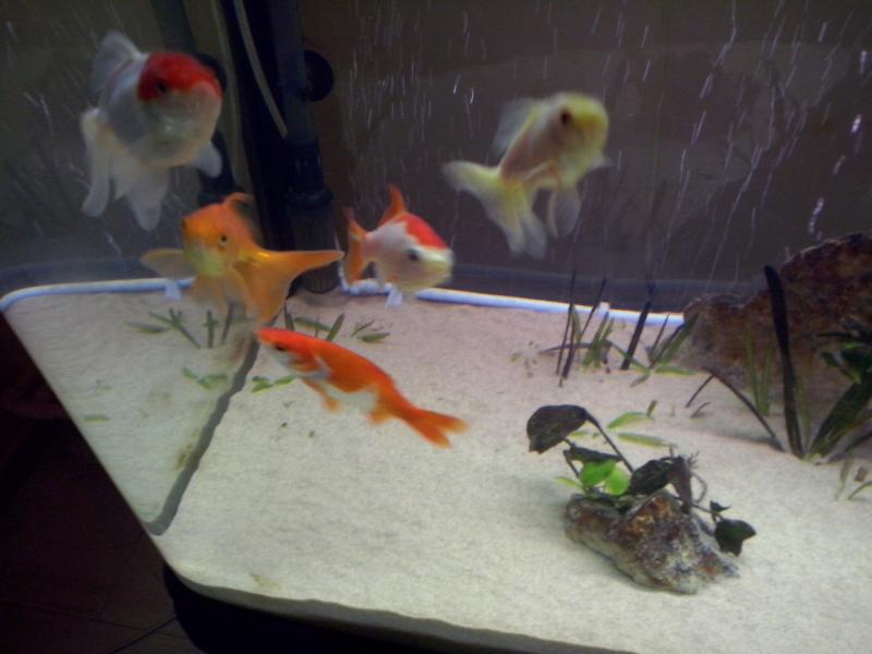 ΕΝΑΡΞΗ ΛΕΙΤΟΥΡΓΙΑΣ: Ιανουάριος 14 2015 διαστασεων 1.00-0,45-0,65 (τα ψαρια μεταφερθηκαν απο 2 διαφορετικά ενυδρεία 1ο) 15χ15χ15 και 2ο)30χ25χ30 οπου ζουσαν εκει απο το Οκτώβριο Γενικές Πληροφορίες: Ψάρια:1 common goldfish ,1 commet goldfish sarasa,1 fancy black moor,1 fancy Oranda,2 funcy funtail ¶λλα είδη:----- Φόντο: (δεν έχω σκεφτεί ακόμα να πάρω) Πέτρες: 5 μικρές Ξύλα:---- Υπόστρωμα:30 κιλά περίπου χρυσή άμμος Φυτά:Anubias,java fern &Valisneria Φωτισμός: Είδος φωτισμού:λάμπες Φθορίου Λαπτήρες:2*T5 Osram 39Watt Διάρκεια:Πρέπει να εχει τελειωσει η φωτοπεριοδος τους Εξοπλισμός Ενυδρείου: Φίλτρανση: (Εξωτερικό/Εσωτερικό) το εξωτερικό λειτουργεί μόνο Elite Crystal-Flo Model 80 επιπεδα 4 ( βιομπαλες,sera siporax,αεροπετρα,σφουγκαρι και ενυδρειακο βαμβακι) Θερμοστάτης (Ρυθμισμένος στους 20-22 βαθμούς) Κυκλοφοριτής (Ηλιος) νερού τοποθετημένος σε κλίση προς τα κατω για να διωχνει τα σκουπιδακια προς τον εισαγωγεα. Θερμόμετρο Αεραντλία Sera 275 plus (τοποθετημένη σε ολη την πισω πλευρα του ενυδρείου) STC-1000 που θελω να παραγγειλω Έξτρα παροχές: 3 ανεμιστηράκια για το καλοκαιρι 2 12αρηδες και 1 9αρης Παραμέτροι Νερού pH: 6.8 ΚΗ: 6 GH: 10 NH3/NH4: 0 ppm NO2: 0 ppm NO3: 5 ppm PO4: - T: 20-26C (αναλογα την εποχη) ΡΟΥΤΙΝΕΣ ΣΥΝΤΗΡΗΣΗΣ: Αλλαγες νερου: 20%-50%καθε εβδομαδα Τροφή Κατεψυγμενα λαχανικα και pellets, spirulina και community flakes, Ποσοτητα και συχνοτητα αναλαγα την εποχη και τις θερμοκρασιες. Μερικες φωτο με τα 4 ψαρακια δεν εχω τα αλλα 2 |