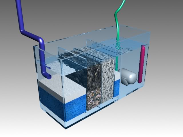 Έκανα μελέτη του χώρου μου και κατέληξα στις διαστάσεις 1,50χ0,70χ0,70 μήκος πλάτος ύψος αντίστοιχα..περίπου 735 λίτρα..Θα κατασκευάσω και σαμπ για αυτά τα λίτρα,όπως πληροφορήθηκα από πολλούς συνχομπίστες οτι αποτελεί την καλύτερη οικονομική λύση σε σύγκριση με εξωτερικά φίλτρα άλλα και την καλύτερη δυνατή φιλτρανση του ενυδρείου.. Παρακάτω θα αναπτύξω το πλάνο μου περί αυτού,διότι είμαι ακόμα σε σκέψεις και μελέτη και θέλω να εξαλείψω οτιδήποτε λεπτομέρεια... Βήμα 1ο Να κατασκευάσω το σαμπ το οποίο σκέφτομαι να είναι περίπου απο 120-200 λίτρα...πάνω κάτω κατανεμημένο όπως την φώτο παρακάτω που βρήκα στο διαδίκτυο.. Εξηγούμαι.. Θα γινει με 5mm ολο,χωρισματα κτλ σε διαστασεις 1 μετρο 40 χ 40 Θα κανω παραγγελια χ3 (1,00χ40) χ2 (39χ40) & χ4 (40χ30 Θα γινουν 4 βασικα χωρισματα για τα υλικα..εξηγουμαι 1ο)χωρισμα εισαγωγη νερου...Υλικα==>Ενυδρειακο βαμβακι,σφουγκαρι μεχρι τον πατο ανοιγμα 10 cm για να περναει το νερο στο επομενο 2ο)Επιπεδο πρωτο ελαφροπετρα,επιπεδο δευτερο βιομπαλες.. 3ο)sera siporax 4ο)Σφουγκαρι και ενυδρειακο βαμβακι Ολα τα χωρισματα και επιπεδα θα διαχωριζοντε με egg crate ή σχαρες (τα οποια ακομα δεν ξερω που να βρω) Μικρολεπτομερειες... Το υψος που θα μπουνε τα χωρισματα ειναι στα 10 cm ενω το καθε χωρισμα θα αποτελειται απο χωρισμα πλατους περιπου 17 cm εκτος απο το 4ο και τελευταιο χωρισμα που θα αποτελειται απο διαστασεις στο περιπου 10-15 cm στο 2ο και το 4ο διαχωριστικο γυαλι θα εχω υλικα μεχρι τετοιο υψος που να αφησω κενο 4cm γυαλι στο τελευταιο διαμερισμα 5ο διαστασεων περιπου 32-38 cm,θα υπαρχει,υπαρχουν αντλιες που θα ανεβαζουν το νερο στο ενυδρειο + θερμοστατη τωρα για παροχη διοξειδιου το σκεφτομαι ακομα.... Πανω απο το σαμπ θα βαλω καπακι απο πλεξι με τοποθετηση 4 ανεμηστηρακια Το οξυγονο που το βαζω?Φανταζομαι μεσα στο ενυδρειο... Αυτα Τα υλικα που θα τοποθετηθουν οπως προανεφερα ειναι αεροπετρα βιομπαλες sera siporax.....ενυδρειακο βαμβακι και σφουγκαρι (αρχη και τελος) Περιπου στα 8-10 λιτρα απο το καθε υλικο... Προχειρη μελετη του ολου θεματος χρηματικης 80 ευρω τζαμι με ρονταρισμενο..(διχως κολιμα απο ειδικο που δεν ξερω ποσο παει μπορω να πω..) Οσον αφορα τα υλικα και την ποσότητα οτι εχετε να προτεινετε απο τιμες για να εχω τον νου μου και να ξερω πανω κατω τι μου γινεται θα ειμαι ευγνωμων.. Απο εκει και επειτα η αντλια ή αντλίες αναλογα με το ποιες θα μου προτεινετε απο δικη σας πειρα... Αυτα Περιμενω οτιδηποτε συμβουλες & τοποθετησεις και σας ευχαριστω ολους εκ τον προτερων (Οπως επισης τι μπορω αλλο να βαλω στο σαμπ)? Βήμα 2ο Να παραγγείλω βάση από κοιλοδοκό σε διαστάσεις 1,50χ70χ60 Η Βάση θα ντυθεί με κόντρα πλακέ θαλάσσης.. Βήμα 3ο Παραγγέλια των τζαμιών που θα είναι σε 10mm με κόντρες 8mm σκέφτομαι για ενίσχυση στις γωνίες με αλουμίνιο.. Απορίες βαση δικων σας εμπειριων 1)Διαστάσεις χωρισμάτων σαμπ που προτεινετε...και γτ? 2)Τι Φ σωλήνες να χρησιμοποιήσω για ένα τέτοιο μέγεθος ενυδρείο... και γτ? 3)Τι αντλία προτείνετε?και γτ? 4)Σε τι ύψος να πω στον τζαμά να μου κάνει τις τρύπες και πόσες στο ενυδρείο και γτ?(Για την υπερχειληση και για αλλα διαφορα) 5)Τι εξοπλισμό/υλικα φιλτραρισματος προτείνετε να βάλω στο σαμπ?και σε ποιο διαμέρισμα?και γτ? 6)Πώς να καλύψω την επιφάνεια του ενυδρείο γτ δεν θέλω να βάλω καπάκι... 7)Τι φωτιστικό λέτε να χρειαστεί για ενα ενυδρείο σαν και αυτό με φυτά μόνο ανούμπιες και java fern (Diy κατασκευη θα γινει) Μπορεί να έχω παραλείψει αρκετά πραγματάκια που έχω στο μυαλό μου 