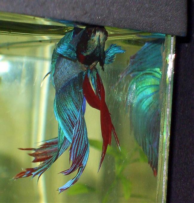 Αν του δείξω φωτογραφία μιας μονομαχοκαλονής κάνει; Χώρια την πλάκα άρχισα να το σκεύτομαι σοβαρά να του βρω κορίτσι, αφού δείχνει σημάδια καλοζωϊας και πάει για φωλιά! Χθες έριξα μια ματιά στο περιοδικό για τις πληροφορίες για σωστό ζευγάρωμα. Θέλει 3 ενυδρεία!!! Μια "γκαρσονιέρα" για τον κύριο, μια για την κυρία, να είναι κοντά για να βλέπονται και μετά ένα άνετο "διαμερισματάκι" 40 τετρ. ... λίτρων το λιγότερο για να κάνουν το σπιτικό τους, χώρια τι θα γίνουν τα μωρά ... αν .... και εφόσον ... Θέλει σκέψη... ... και χώρο!!!!