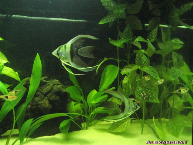 Έχεις πράξει πολύ σωστά που έχει αφήσει ελεύθερο χώρο στο κέντρο του ενυδρείου για να περιφέρονται οι αρλεκίνοι με άνεση και το έχεις φυτέψει περιφερειακά. ¶λλωστε είναι από τα σμηνόψαρα που σχηματίζουν πιο δεμένα κοπάδια από άλλα είδη. Έχω μια ένσταση για τα σκαλάρια βέβαια... Από φυτά βάλε κανένα χαμηλό...όχι γρασίδι αλλά του είδους cryptocoryne. Αυτά από εμένα και καλή συνέχεια.