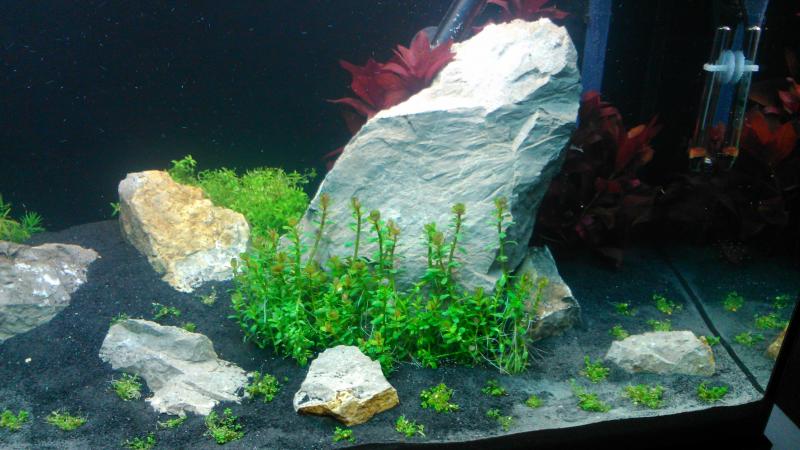 Θα με απασχολουσε καπως η θεση του κοκκινου φυτου, αφου συνηθως τα κοκκινα φυτα, ειναι δυσκολα φυτα και θελουν πολυ φως. Εκει τους το κρυβει αρκετα η πετρα. Συν οτι μπαινουν σε "στατηγικες" θεσεις για να σπανε την πρασινιλα των αλλων.