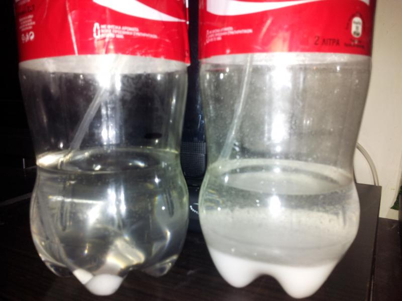 Και άλλη απόπειρα ανεπιτυχής.Έκανα το μείγμα κανονικά όπως ξέρουμε και το αφησα στην ησυχια του.Μετα απο 24 ωρες σημερα δηλαδη που γυρισα η πιεση ειχε παει στο 4 παρα κατι,ειχε σταματησει απο μονο του την παροχη co2 στο ενυδρειο(υπηρχε στην μπουκαλα Β της σοδας co2).Το υλικο -κιτρικο οξυ παλι εχει μειωθει σημαντικα .Δεν μπορω να καταλαβω τι φταιει ενω κανω τα παντα οπως εσεις και εχω και πολλα βιντεο στο youtube Τα σωληνακια φαινονται ενταξει αλλωστε ειναι καινουρια (ουτε βδομαδα) το μονο που ψιλιαζομαι ειναι το difusser οπως εγραψα και σε προηγουμενο θεμα.Βαζω φωτογραφιες των μπουκαλιων που φαινεται η διαφορα -μείωση στο κιτρικο οξυ μεσα σε 24 ωρες.Το μαυρο σημαδι στο μπυκαλι απο αριστερα δειχνει την διαφορα σταθμης. |