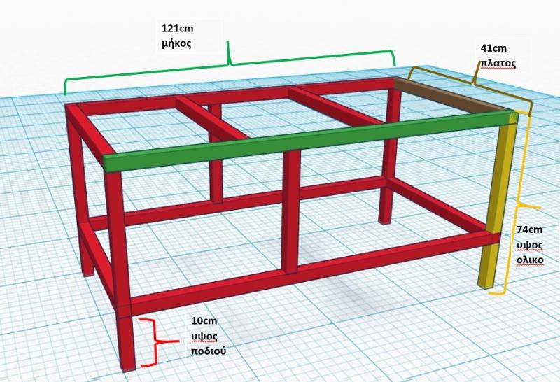 εγώ πάντως θα πρότεινα εκεί που ειναι στην μέση τα κάθετα σίδερα να προσθέσεις ακόμη 2 πόδια για να κατανείμεται καλύτερα το βάρος