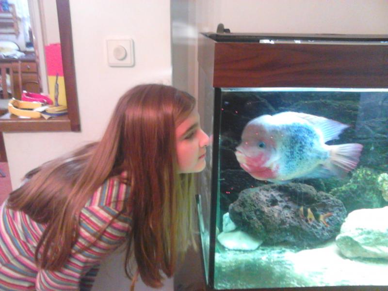 Απίστευτο ψάρι (αρσενικό)... έπαιζε με την γάτα "κυνηγητό" (αυτή πάνω στο καπάκι του ενυδρείου... με το "χέρι" στο ψάρι και την ουρά της αυτό). Το μετέφερα σε ένα φίλο όταν τελείως τυχαία έκανα μια επίσκεψη και είδα ότι είχε ενυδρείο (κάτι που ΔΕΝ γνώριζα) και μέσα ένα θηλυκό!!!!! Ούτε που θυμάμαι πόσα ενυδρεία στήσαμε, για να μεγαλώνουμε τα μωρά.- |