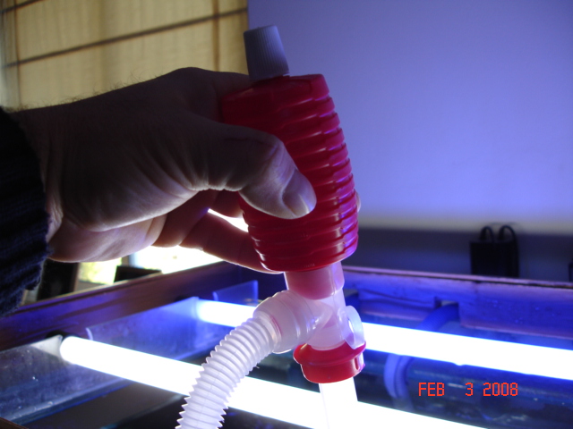 Το πρασινο που λες φιλε μου ειναι σκουπα βυθου ( εχουν τα πετσοπ ) την οποια εχω μετατρεψη για να μην ρουφαω νερο και το κυριοτερο να μην βαζω τα χερια μου μεσα στο ενυδρειο. Πολυ απλα πηρα μια αντλια χειρος, εβαλα στην εισαγωγη της αντλιας την σκουπα και στην εξαγωγη ενα μακρι λαστιχο. Τρομπαρεις δυο, τρεις φορες και κανεις την δουλεια σου ομορφα και ωραια. Απλα πραγματα.....