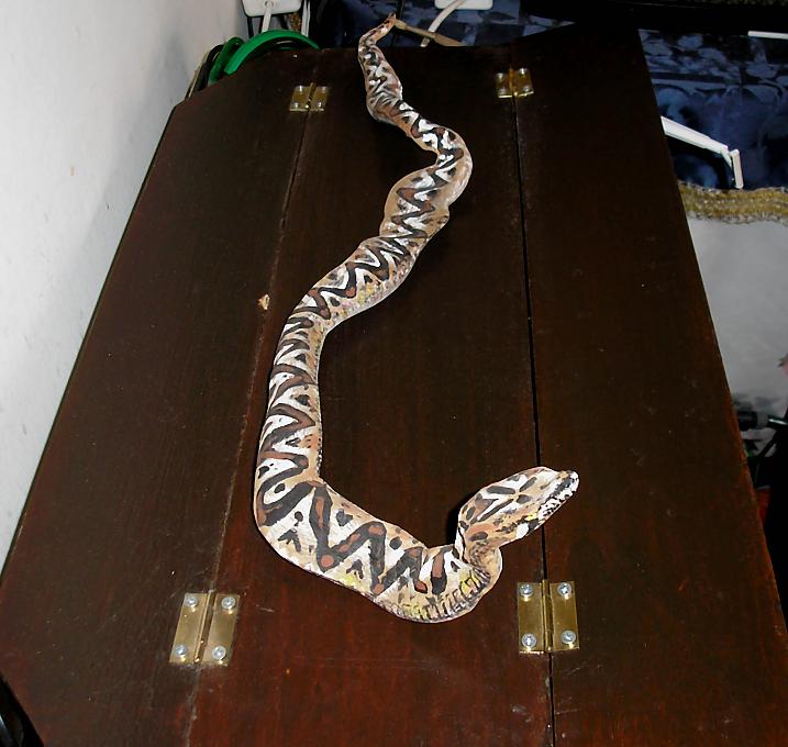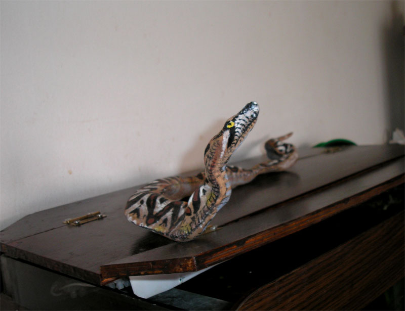 Κι επειδη εγω δεν μπορω να εχω καποιο ζωντανο ερπετο αυτη τη στιγμη ως κατοικιδιο, καθησα κι εφτιξα ενα ζωγραφιστο.. Ειναι ενα φυσικο ξυλο που βρηκα στην παραλια βασικα,αλλα ειναι τοσο αληθοφανες με την πρωτη ματια που μπορειτε να φανταστειτε τι παθαινουν οι επισκεπτες μου που το πρωτοβλεπουν ! |
