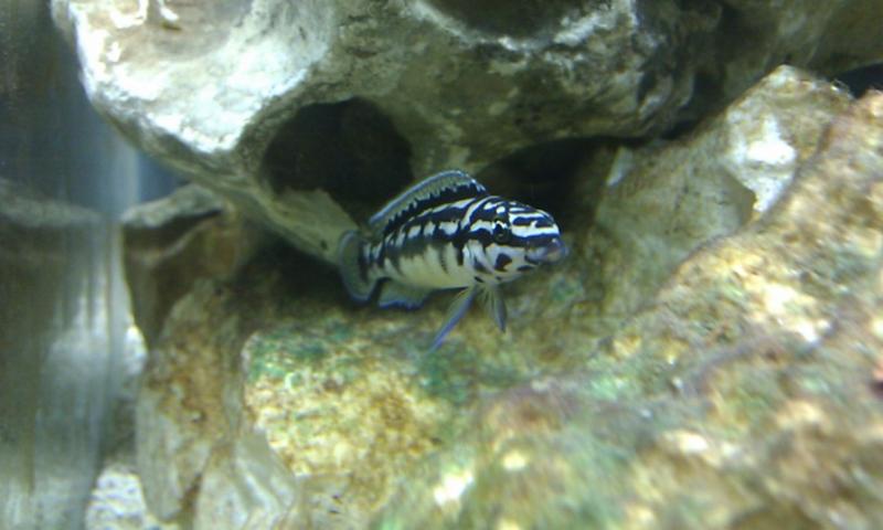 Δυστυχώς τα Brevis που θα μου έδινε ο φίλος Κώστας από 3 ήταν τελικά μόνο ένα. Δεν το βλέπω να αντέχει, ήδη το κυνηγάνε τα julie και μένει συνεχώς κοντά στην επιφάνεια για να αποφύγει το κυνηγητό. Το άλλο πρόβλημα που έχω είναι ότι από τα 4 julie τα 3 τα πηγαίνουν μια χαρά μαζί, αλλά κυνηγάνε το τέταρτο συνέχεια. Παρόλο που έχουν επιλέξει σαν φωλιά την αριστερή πλευρά του ενυδρείου (όπως φαίνεται στη φώτο) ακόμα και να το δούνε στην δεξιά πλευρά μέσα στις πέτρες βγαίνουν και τα 3 μαζί και το ορμάνε. Όταν λέμε να σχηματιστεί ζευγάρι και να βγάλω τα άλλα, δηλαδή να μείνουνε μόνο 2 ψαράκια στο ενυδρείο; Αν κάνω πιο ψηλή τη στοίβα με τις πέτρες στη δεξιά πλευρά λέτε να μπορέσει το 4ο να βρεί καταφύγιο; Αν υπάρχει κάποιος φίλος που ενδιαφέρεται για το brevis ας μου στείλει πμ. Είναι κρίμα να το αφήσουμε να ζορίζεται από τα άλλα.