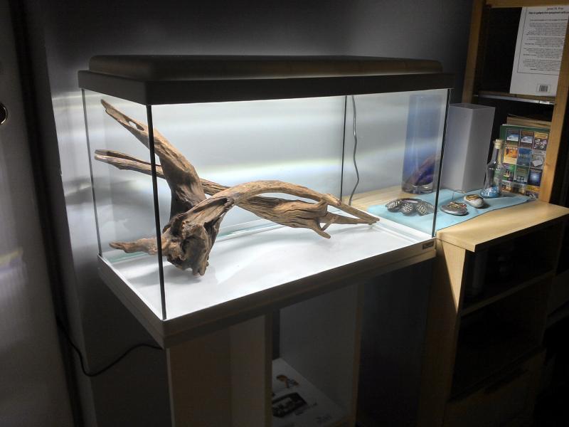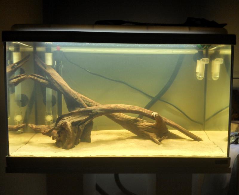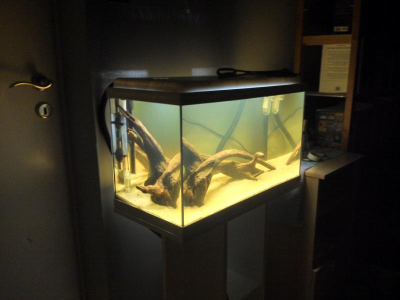 Τωρα σας φαινεται οκ? Νομιζω πιο καλα μου αρεσε τοτε το στησιμο αυτο που ηταν αδειο το ενυδρειο χωρις την αμμο και νερο. Μπηκε και η αποχη με την τροφη, να ξεκινησουμε λιγο στρωσιμο και σε καμια βδομαδα+ θα κοιταξω να μπολιασω και να το αφησω αλλες λιγες μερες με τροφη και μετρησεις. Τωρα το ενυδρειο τρεχει με νερο 8-9 μερες. Μηπως αυτο το στησιμο ειναι πιο καλο (ετσι ειχαν κατσει τα ξυλα μονα τους οταν βυθιστηκαν εντελως). Για φοντο λεω να βαλω καφε σκουρο χρωμα.