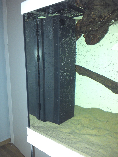 Οσον αφορα τα ξυλα, μονο το ενα εμεινε κατω. Τα αλλα 2 κανουν βολτα στην επιφανεια. Τα αφηνω εκει και οποτε θελουν ας κατσουν... Τωρα σκεφτομαι για ενα μικρο εξωτερικο φιλτρο που λεγαμε μπας και βαλω. Λεω να στρωσω τωρα με το biobox 2 και κατα τη διαρκεια ψαχνω να βρω κανενα μικρο εξωτερικο (ειδα μεχρι ωρας τα eheim 2211, eheim 2213 *μαλλον προτιμοτερο για τα λιτρα μου απο το 2211*, fluval 106 και ELITE Crystal-Flo Model 40. Το biobox 2 παραειναι μεγαλο τελικα (εχει πολυ υψος). Σε καμια περιπτωση δηλαδη δεν μπαινει στην πλατη (μιας και πισω η αμμος εχει μεγαλυτερο υψος). Τωρα το εχω βαλει στο αριστερα πλαινο τζαμι, που η αμμος ειναι χαμηλα πολυ και ειναι καπως οριακα. Δεν ξερω μηπως πρεπει να μπει πριν μπει η αμμος και να θαφτει λιγο...