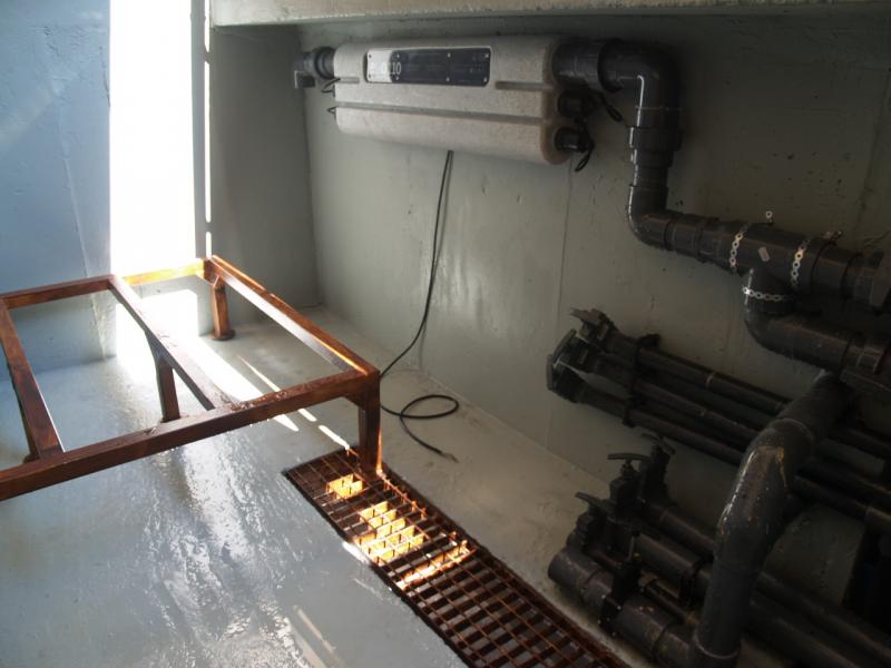 Τελικό βάψιμο με μονωτικό νερού στο μηχανοστάσιο και δοκιμαστική τοποθέτηση φίλτρο και uv εν αναμονή για το τελικό χρώμα /μονωτικό για την λίμνη.