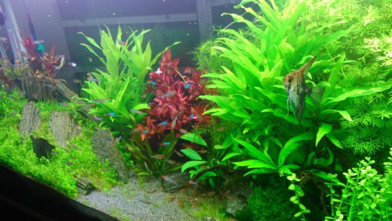Το έκανες γκαζονάκι το micranthemum micranthemoides? Στην μέση έχεις βάλει εχινοντορο ? Αν ναι να ξέρεις τώρα που ειναι νωρίς οτι θα γίνει τέρας και θα σου καλύψει τα υπόλοιπα. Λίγη τακτοποίηση των φυτών θα το αναδείξουν . Για τα αγγελοψαρα μια χαρα νομιζω κάνει και το κερατόπτερης ... |