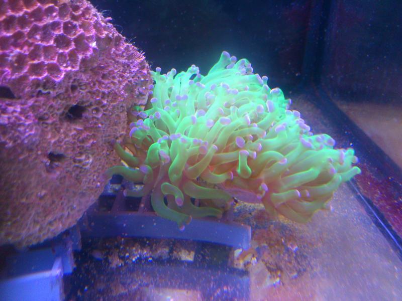 Κάποιες φωτο από το κινητό ύστερα από την προσθήκη καποιων φραγκ που έστειλε ένας φίλος και τον ευχαριστω και από εδώ.Έχω ενα θέμα με πράσινη άλγη που εμφανίστηκε πριν κάνα 20ημερο που άφησα το ενυδρείο λίγο στην μοίρα του,αλλα δείχνει να μην αποτελεί πρόβλημα και να είναι ελεγχόμενη.Ήδη ετοιμάζονται 60 λίτρα για αλλαγή αύριο....Δεκτές παρατηρήσεις,ειδικά για την θέση των κοραλιων..